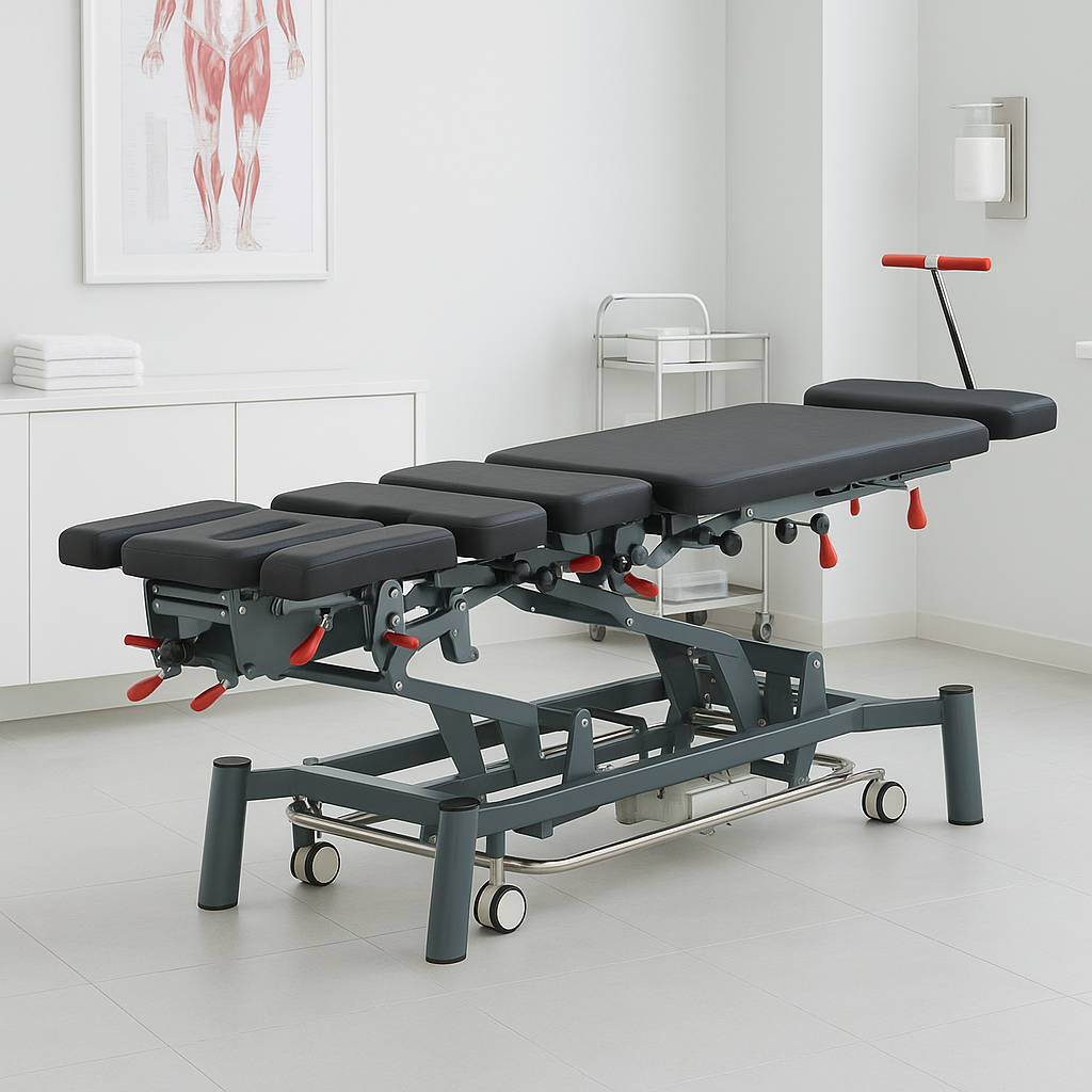 Its single-column PowerLift system, smooth lumbar traction, and ergonomic design enable practitioners to deliver accurate, fluid spinal manipulation — enhancing mobility, comfort, and alignment in every session.