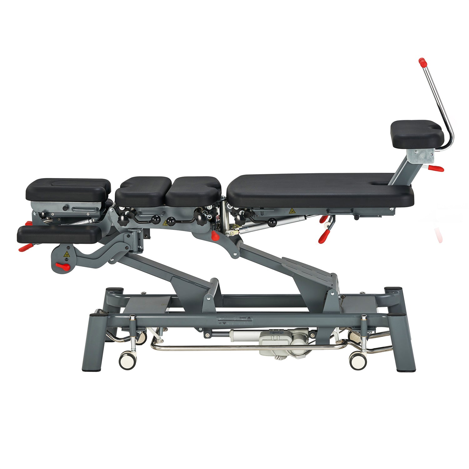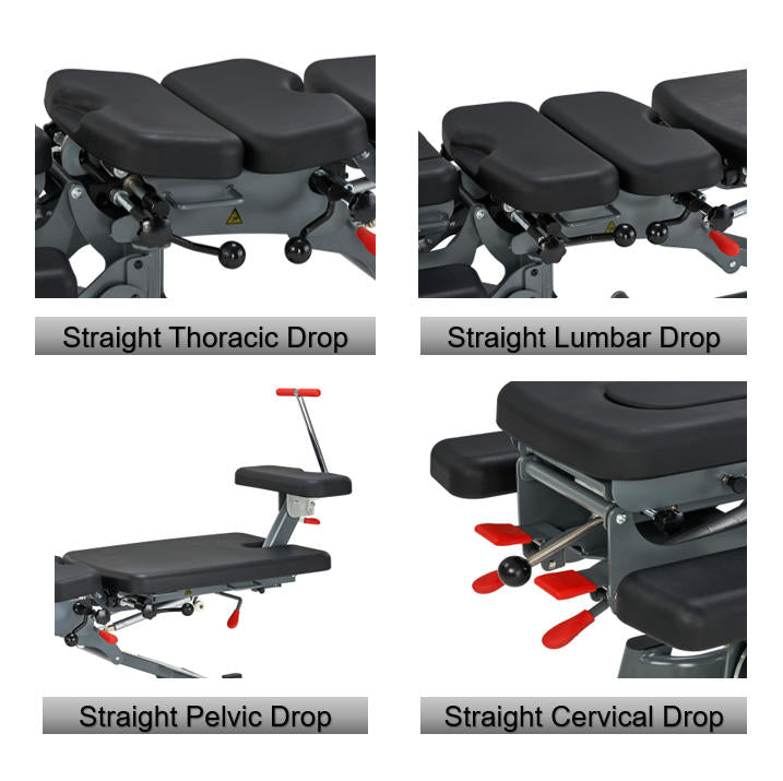 Four-Zone Manual Drop System: Cervical, Thoracic, Lumbar, and Pelvic zones with adjustable tension on both sides